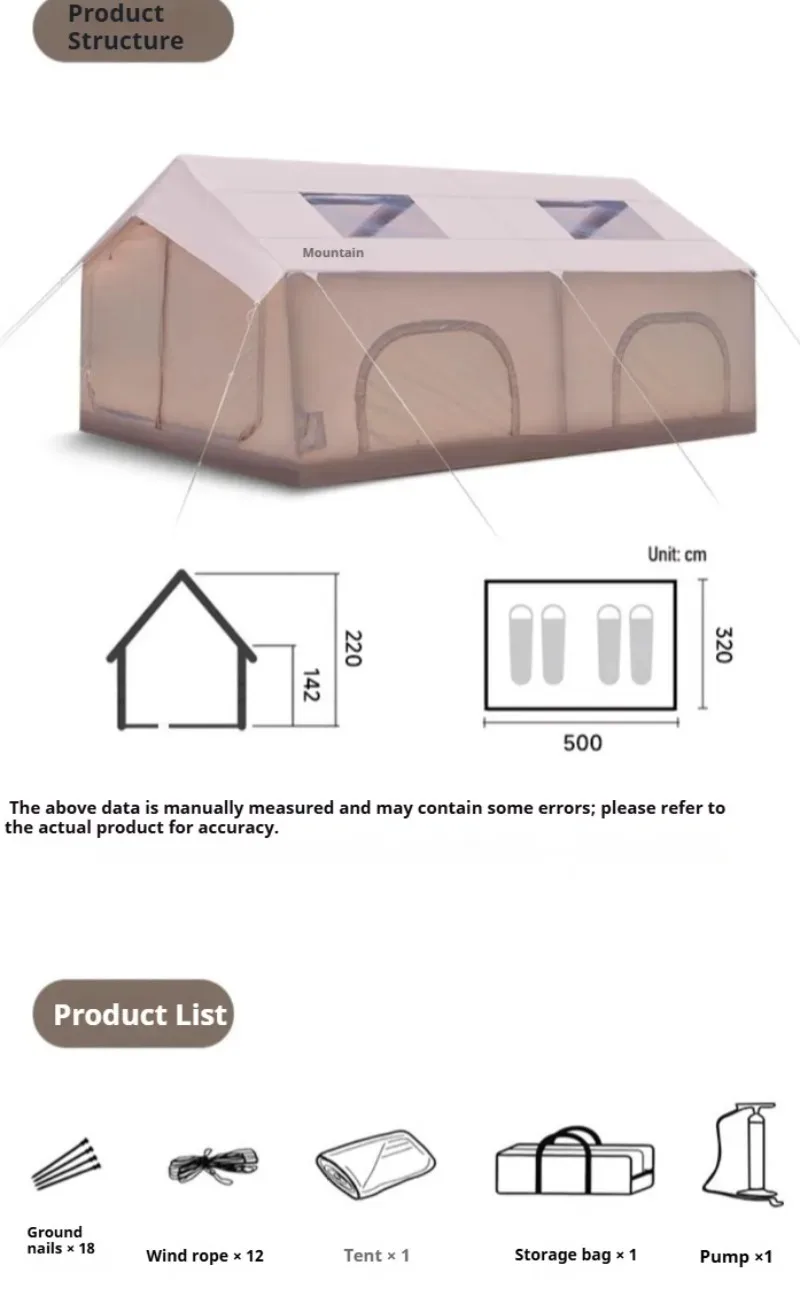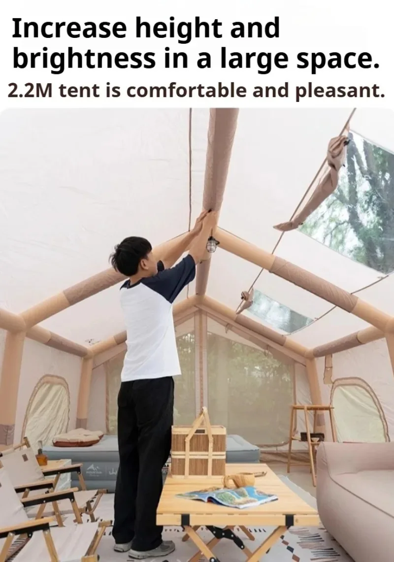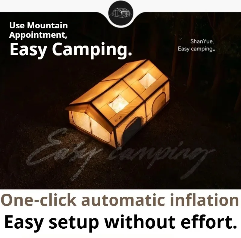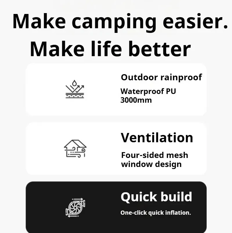 Automatic inflatable tent camping overnight rainstorm protection outdoor two rooms and one living room portable camping equipment full set.